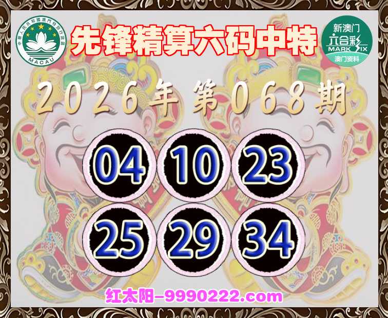 068期:【先锋精算】 ☺️六码中特☺️【04.10.23.25.29.34】开:23