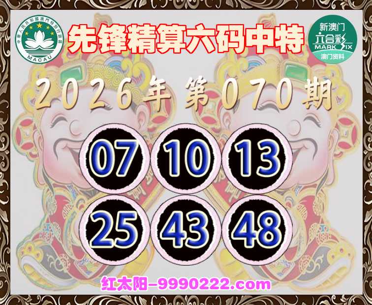 070期:【先锋精算】 ☺️六码中特☺️【07.10.13.25.43.48】开:25