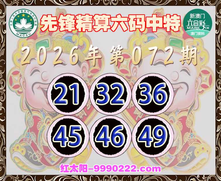 072期:【先锋精算】 ☺️六码中特☺️【21.32.36.45.46.49】开:46