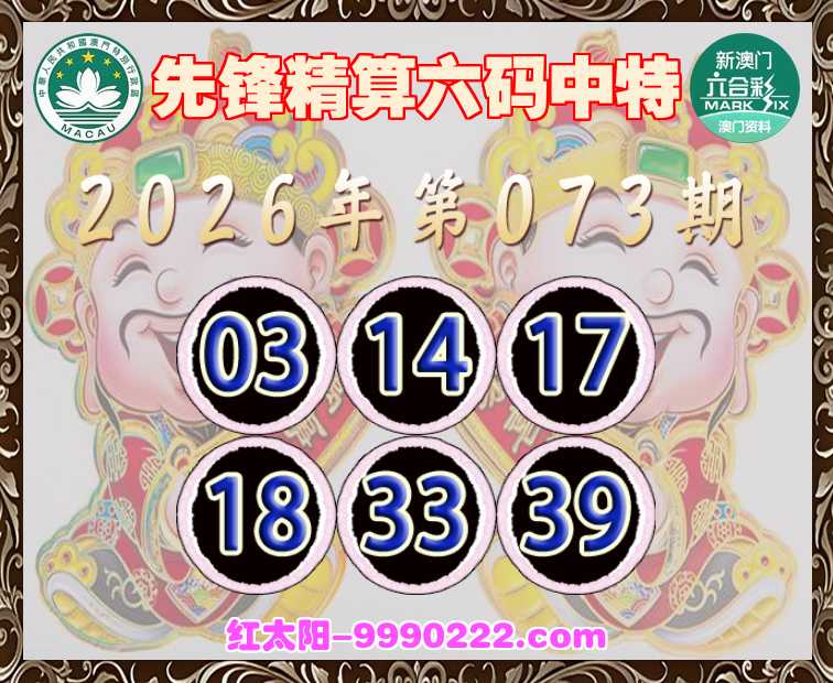 073期:【先锋精算】 ☺️六码中特☺️【03.14.17.18.33.39】开:34
