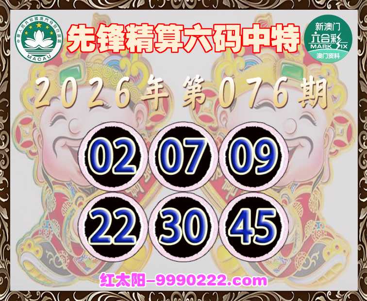 076期:【先锋精算】 ☺️六码中特☺️【02.07.09.22.30.45】开:02